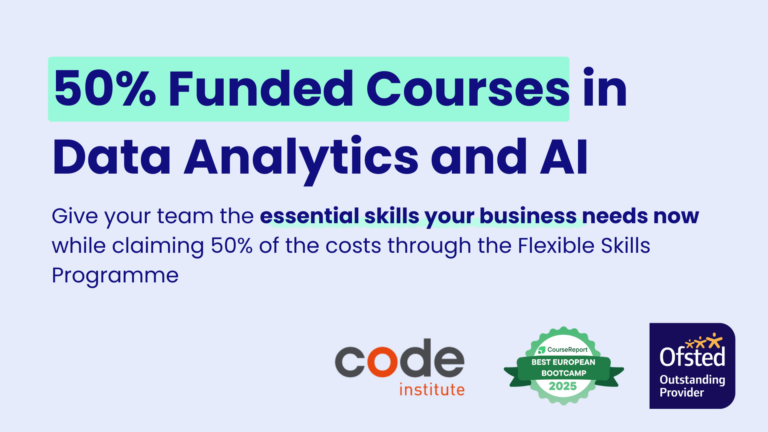 Code Institute is offering FinTech Wales members the opportunity to upskill their teams in AI and data analytics, with 50% of course costs funded through the Welsh Government’s Flexible Skills Programme.